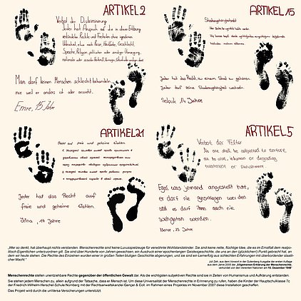 Im Rahmen eines mehrwöchigen Projektes der Friedrich-Wilhelm-Herschel Hauptschule Nürnberg beschäftigten sich die Schüler der Klasse 7c mit der bedeutenden Rolle der Menschenrechte und setzten sich mit der Lage der Menschenrechte in der Europäischen Union sowie der Welt auseinander.